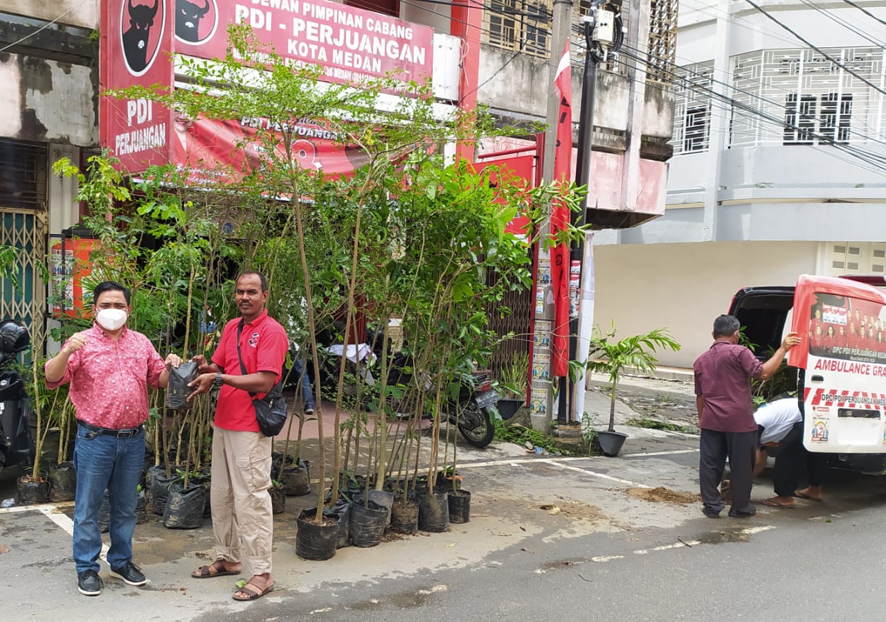 MEDAN-Kader Partai Demokrasi Indonesia (PDI Perjuangan) melaksanakan penamaman pohon sebagai simbol tumbuhnya ideologi Pancasila.