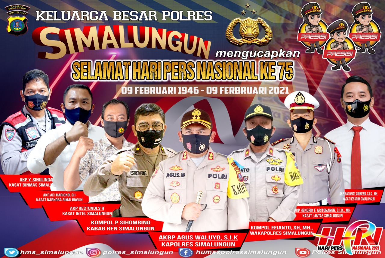 “Selamat Hari Pers Nasional 2021 untuk seluruh insan pers, khususnya kepada rekan-rekan pers unit Polres Simalungun dan yang bertugas di wilayah Kabupaten Simalungun,” ungkap Kapolres, Selasa (9/2/21).