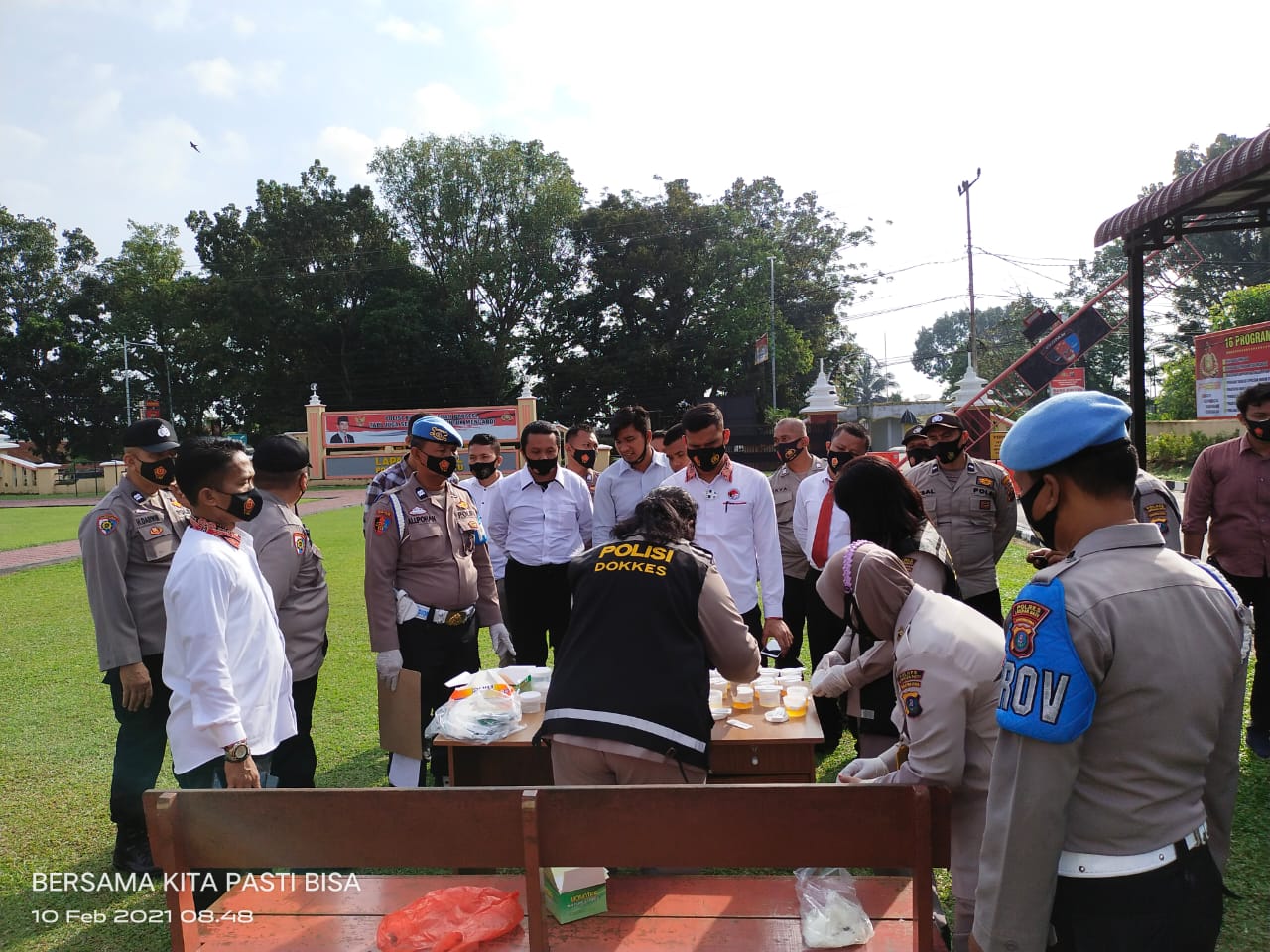 Tes urine dipimpin langsung oleh Wakapolres Kompol Muhd Taufik, Kabag Ops Kompol Marluddin, Kabag Sumda Kompol Hendri Matondang, dan Kasat Narkoba AKP Martualesi Sitepu, dilaksanakan oleh KBO Sat Narkoba Iptu Chairul Siregar, Kanit I Ipda Sarwedi Manurung, Kasiwas Ipda Fajar Sidik, Kasi Propam Ipda Iskandar Sipayung, Paur Dokes Suprapti yang melibatkan personelnya masing-masing.