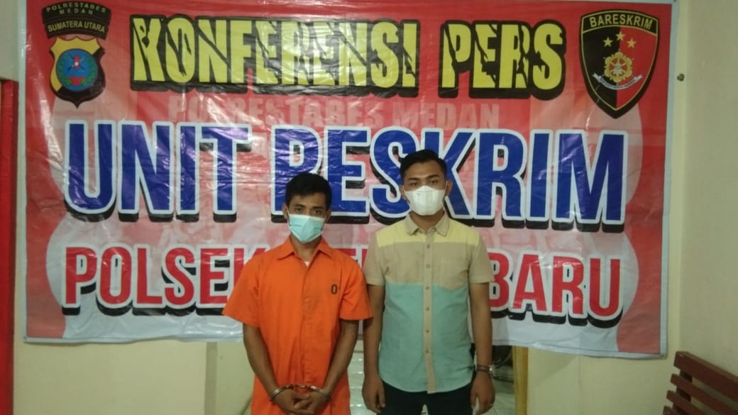 MEDAN – Seorang buruh bangunan, Muhammad Amri (28), warga Jalan Setia Budi, Kelurahan Tanjung Sari, Kecamatan Medan Selayang, ditangkap petugas Unit Reskrim Polsek Medan Baru, Sabtu (23/2/21).