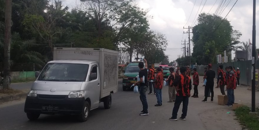 Selain masker, PAC Pemuda Pancasila Medan Amplas juga membagikan 500 hand sanitizer kepada para pengguna jalan utk membantu pemerintah menekan terjadinya penularan covid 19.
