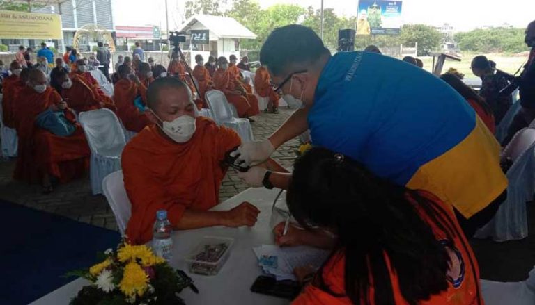 MEDAN – Rohaniawan agama Budha mengikuti aturan program pemerintah untuk memutus mata rantai Covid-19 di Indonesia, khususnya di Sumatera Utara Sangha Agung Indonesia (SAGIN) dan Perwakilan Umat Budha Indonesia (Walubi) Sumatera Utara bekerjasama dengan Satgas Covid-19 Sumut, melakukan suntik vaksin Jumat (5/3/2021) di Cinta Budaya Komplek MMTC Pancing, Deli Serdang.