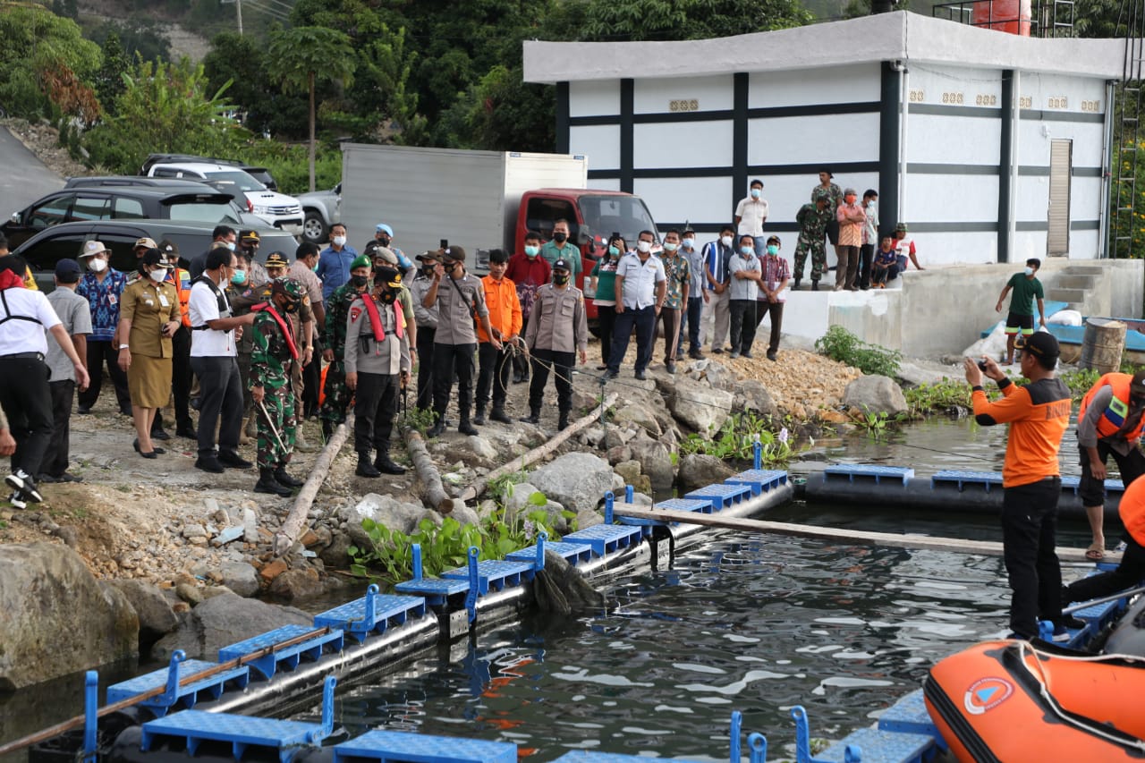 MEDAN – Kapolda Sumut, Irjen Pol RZ Panca Putra bersama Pangdam I/BB Mayjen TNI Hassanuddin meninjau penertiban Keramba Jaring Apung atau 49 KJA di Kecamatan Baktiraja, Kabupaten Humbahas, pada Kamis (6/5/2021).