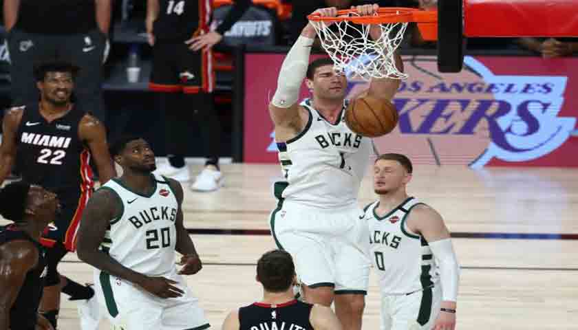 Pada game kelima tersebut, Miami memperlihatkan permainan bertahan yang kokoh sehingga membuat kesulitan Bucks, yang harus bermain tanpa bintang utama Giannis Antetokounmpo. Pemain Bertahan Terbaik NBA 2019-20 dan favorit untuk mengulang sebagai MVP liga. Ini tidak bermain setelah pergelangan kaki kanannya kembali terkilir, dalam paruh pertama game keempat hari Minggu kemarin.