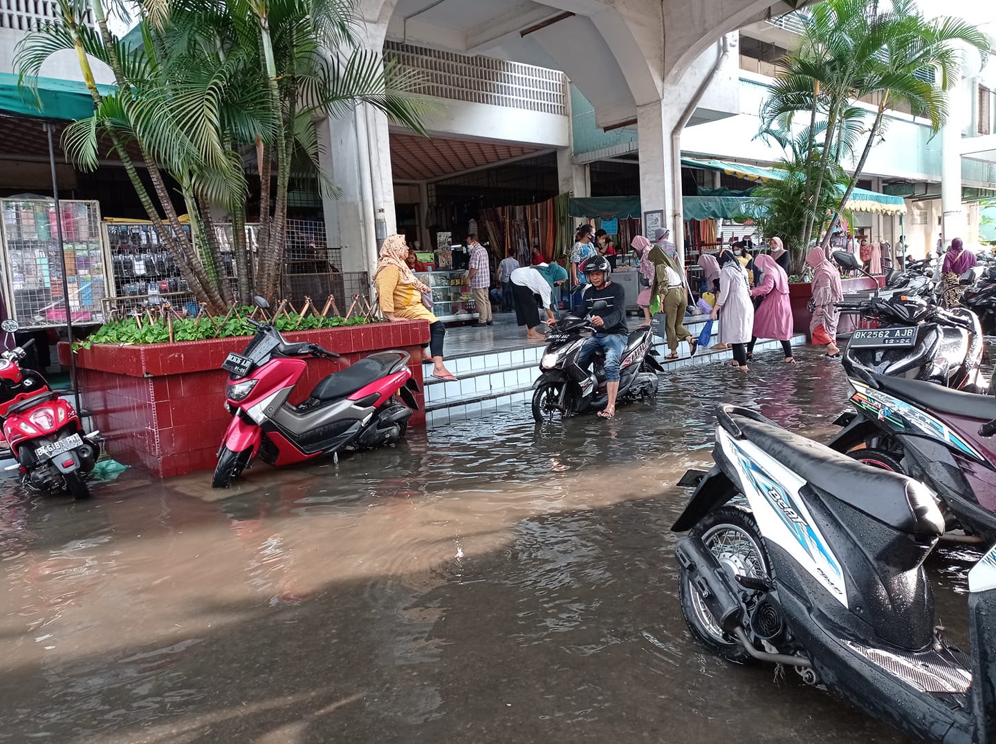 Puluhan pengunjung pusat pasar yang hendak keluar kaget melihat air sudah meninggi di bagian belakang Medan Mall dan bagian depan Pusat Pasar. Tidak sedikit pengunjung terpaksa membuka sepatunya agar tidak basah terendam genangan air yang mencapai di atas mata kaki orang dewasa atau sekitar 15 centimeter. Air juga menggenang di tempat parkir kendaraan sepeda motor.