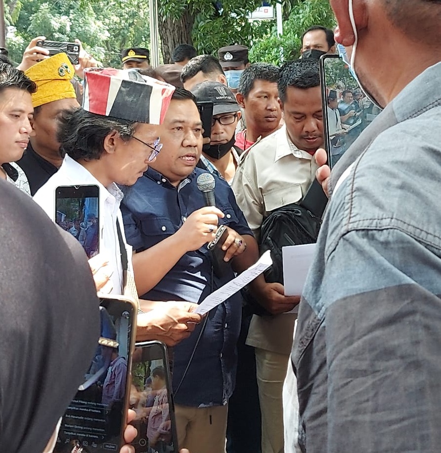 Aksi berjalan tertib dan lancar, tampak ikut serta dalam massa aksi penanggung jawab aksi aktivis dan pegiat sosial Saharuddin dan lainnya.