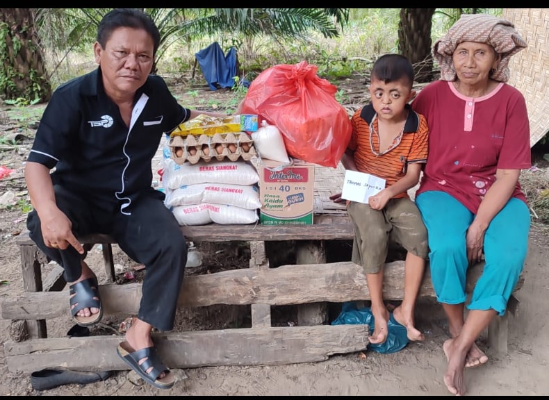Sembako diterima Rahmad bersama Ayahnya, Thamrin (49), ibu dan neneknya.