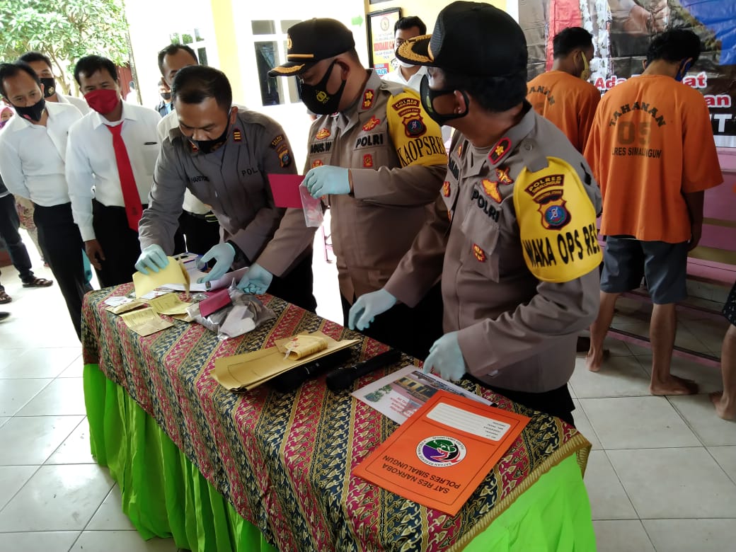 SIMALUNGUN – Berdasarkan catatan SatNarkoba Polres Simalungun, selama 6 bulan, SatNarkoba Polres Simalungun berhasil mengungkap 82 kasus dan menangkap 104 orang. Selain itu jumlah barang bukti sabu 231, 29 gram, ganja 44,77 gram. Hal ini disampaikan Kapolres Simalungun AKBP Agus Waluyo saat jumpa wartawan, Senin (9/11/2020) di Mapolres Raya.
