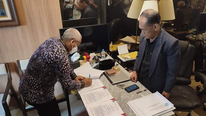 Padanglawas.Siberindo.co | Wakil Bupati Padang Lawas ( Palas ) Drg H Ahmad Zarnawi Pasaribu Cht Msi MM menandatangani Naskah Perjanjian Hibah Daerah (NPHD) antara Lembaga Pengelolaan Proyek Badan Kongres Internasional Forum Budaya dan Warisan Dunia (LPP-BIFBWD) .