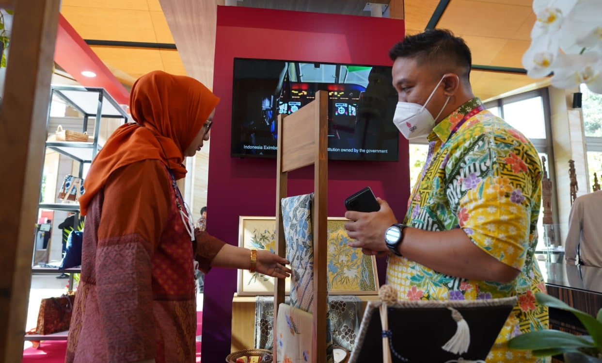 Riyani menambahkan, “Perhelatan ini memberikan dampak positif bagi Indonesia dan khususnya bagi para pelaku UMKM Indonesia. Mengikuti pameran dengan skala internasional, memberikan wawasan baru bagaimana pelaku UMKM harus memiliki ciri khas, keunikan dari produknya selain menjaga kualitas produk. Kami bangga karena salah satu mitra binaan kami, Maharani Craft yang produknya berupa perhiasan dan kerajinan terpilih menjadi salah satu souvenir G20 untuk para delegasi (01)