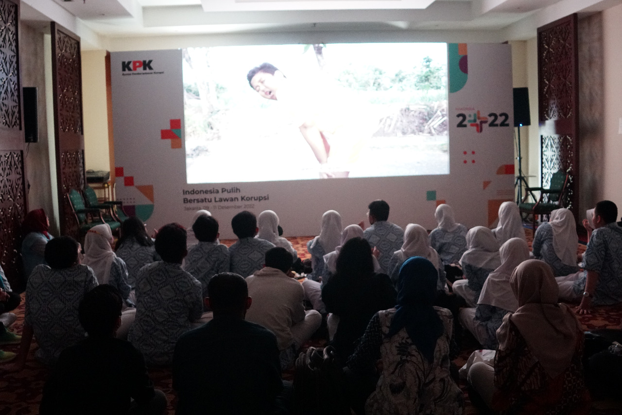 “KPK setiap tahun melibatkan generasi muda dalam sosialisasi antikorupsi lewat cara yang dekat dengan kesehariannya, yaitu lewat film. Adik-adik yang hadir untuk menonton film hari ini, jika punya keinginan jadi bagian gerakan menolak korupsi bisa mengikuti ajang ACFFest yang diselenggarakan KPK,” katanya di depan 50 peserta.