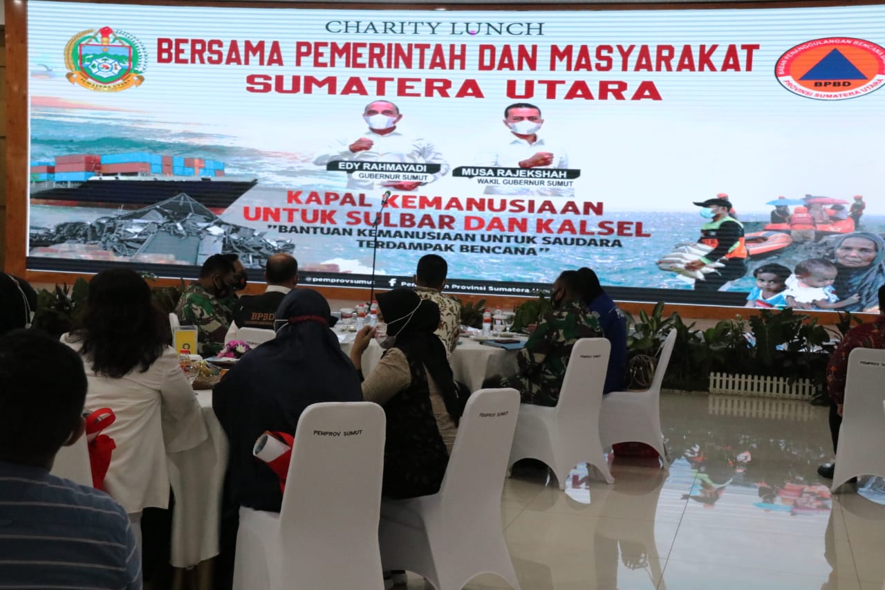 MEDAN – Pemko Medan menilai acara Charity Lunch Bersama Pemerintah dan Masyarakat Sumatera Utara di Pendopo Rumah Dinas Gubsu Jalan Sudirman Medan, Rabu (10/2), sangat positif. Sebab, kegiatan yang mengusung tema Bergerak Bersama Selamatkan Bangsa Dalam Penanggulangan Bencana tersebut, bertujuan untuk membantu warga yang terdampak bencana di Sulawesi Barat (Sulbar) dan Kalimantan Selatan (Kalsel).
