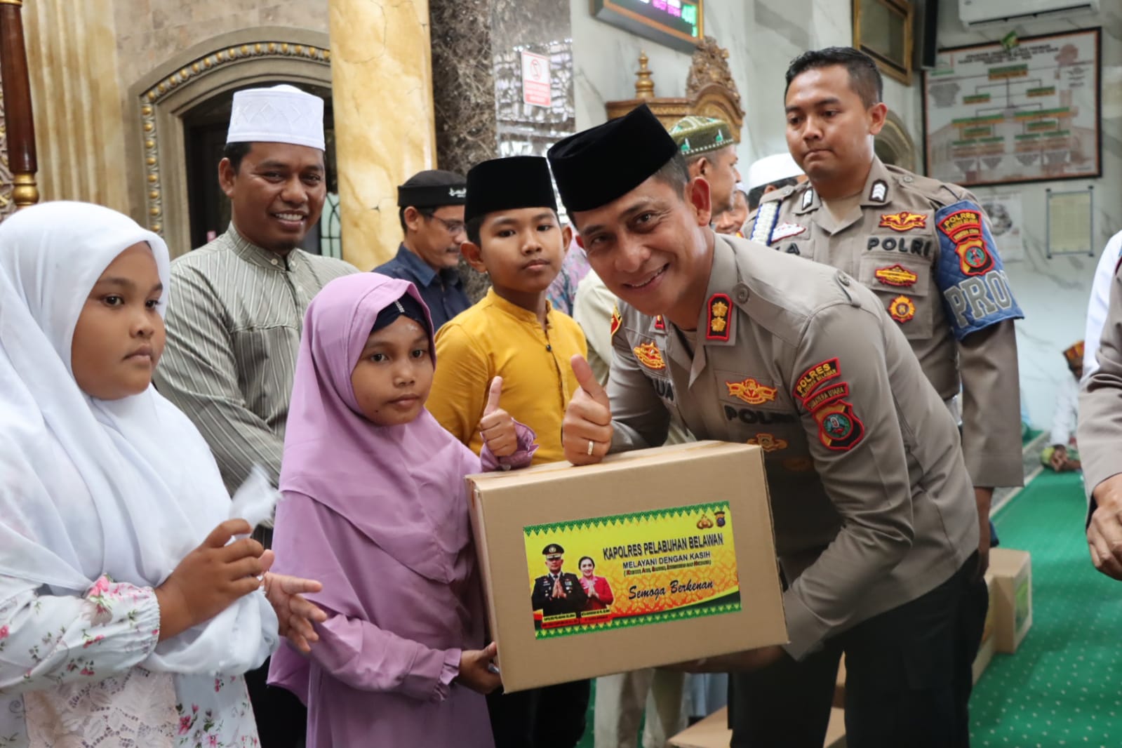 Dalam kesempatan itu, AKBP Josua Tampubolon membagikan bantuan sembako kepada pengurus BKM, warga kurang mampu dan anak yatim yang hadir dalam kegiatan tersebut serta memberikan bingkisan makanan ringan kepada seluruh anak-anak yang hadir.