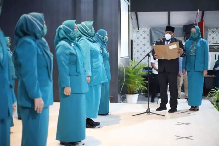 TANJUNGBALAI  – realitasonline.id | Wali Kota Tanjungbalai HM Syahrial, selaku Ketua Dewan Pembina PKK Kota Tanjungbalai didampingi Ketua TP-PKK Tanjungbalai Hj Sri Silvisa Novita menghadiri pelantikan Ketua TP- PKK Kecamatan se Kota Tanjungbalai periode 2021-2024. Pengurus TP-PKK Kecamatan dilantik langsung Ketua TP- PKK Kota Tanjungbalai, Ny. Hj Sri Silvisa Novita M Syahrial di pendopo rumah dinas Wali Kota (Rabu, 10/3/2021).
