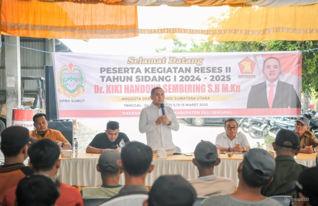 | Deli Serdang, 11 Maret 2025 – Anggota DPRD Provinsi Sumatera Utara dari Fraksi Gerindra , Kiki Handoko Sembiring, menggelar reses di Desa Tuntungan II, Kecamatan Pancur Batu, Deli Serdang. Dalam agenda tersebut, Kiki tidak hanya menyerap aspirasi masyarakat, tetapi juga melakukan rekrutmen kader Partai Gerindra guna memperkuat struktur partai di tingkat daerah.
