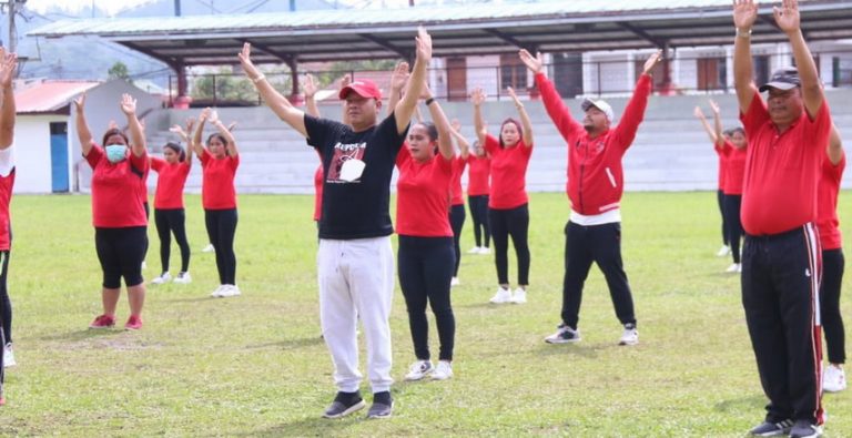 TAPANULI UTARA – Bupati Tapanuli Utara Drs Nikson Nababan MSi hadiri pelaksanaan kegiatan Senam Peningkat Imun. Kegiatan berlangsung di Lapangan Serbaguna Tarutung, Sabtu (8/5/2021).