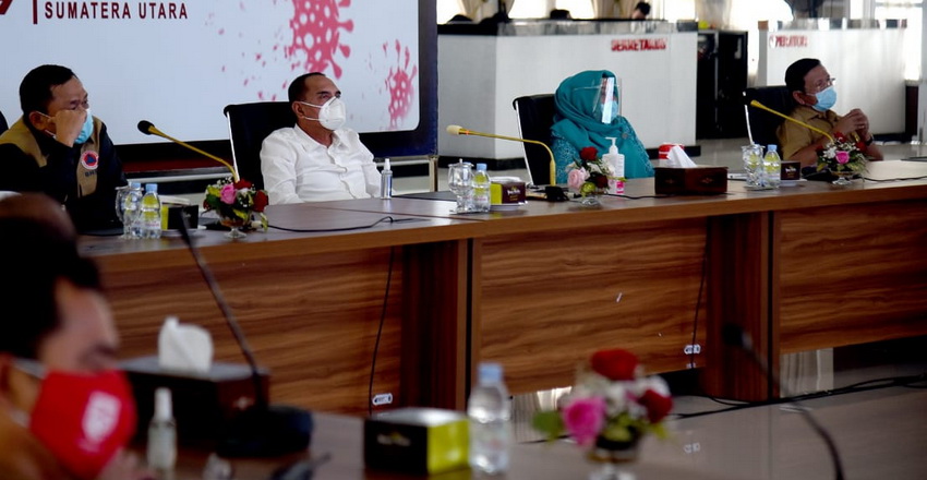 Rapat koordinasi juga diikuti Gubernur Sumut Edy Rahmayadi dari Posko Gugus Tugas Percepatan Penanganan Covid-19, Jalan Jenderal Sudirman Nomor 41 Medan.