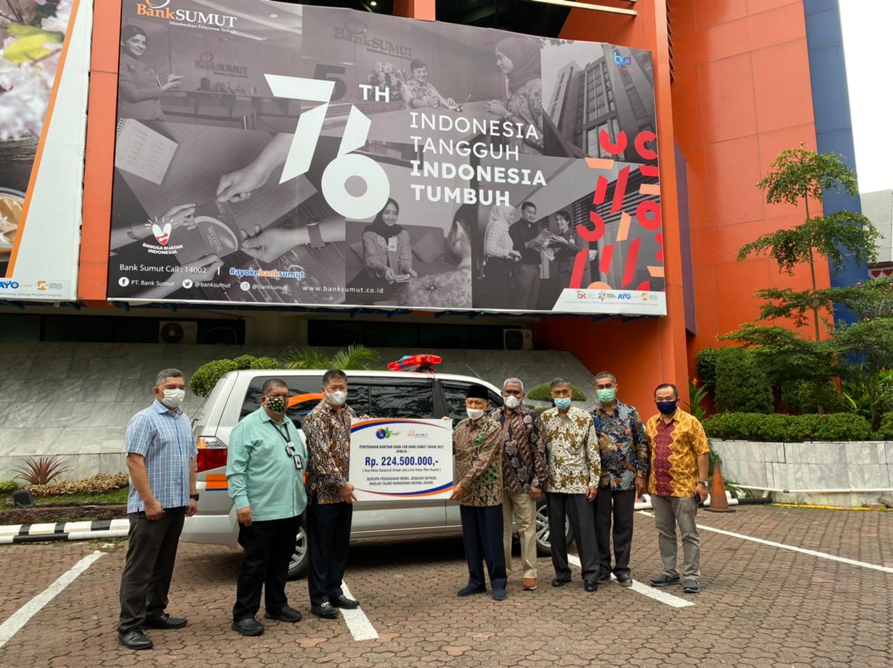 MEDAN – PT.Bank Sumut memberikan bantuan satu unit mobil jenazah kepada BKM Mesjid Fajar Ramadhan Medan Johor.