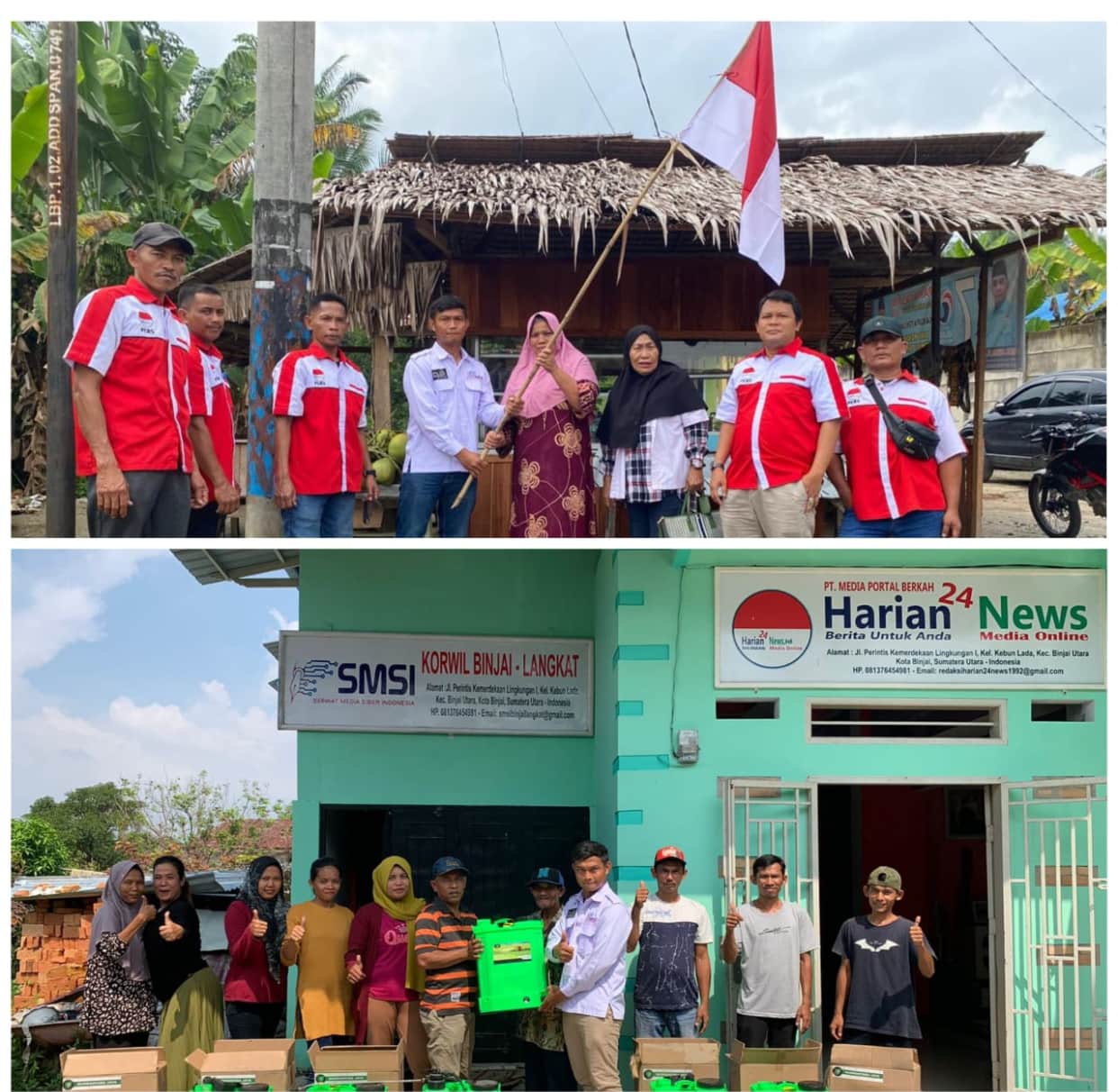 Binjai, – Bentuk kontribusi puncak HUT RI ke-78 Tahun 17 Agustus 2023 mendatang, Serikat Media Siber Indonesia (SMSI) Pusat melalui SMSI Binjai-Langkat, Provinsi Sumatra Utara, bagikan sejumlah bendera merah putih dan alat semprot pestisida sprayer elektrik kepada warga masyarakat berpropesi sebagai petani, bertempat di kantor SMSI Binjai-Langkat, Jalan Perintis Kemerdekaan, Kelurahan Kebun Lada, Kota Binjai, Jumat (11/8/2023). Pukul 10 Wib.