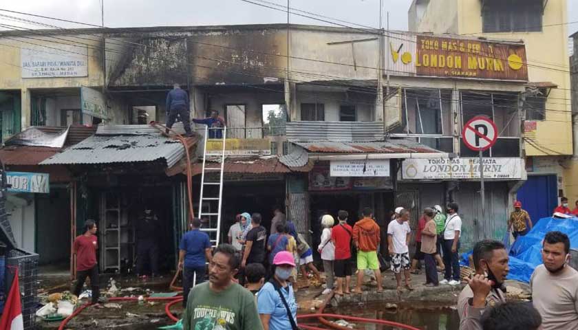 MEDAN – Sebanyak delapan unit ruko (rumah toko) di Pajak Simpang Limun Jalan SM Raja simpang Jalan Sakti Lubis Medan terbakar, Kamis (10/9/2020) sekira pukul 12.00 WIB. Tidak ada korban jiwa, namun kerugian diduga mencapai miliaran rupiah.