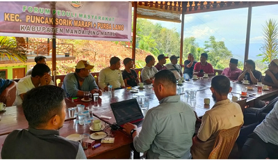 PANYABUNGAN-Tokoh masyarakat perwakilan dari desa-desa di Kecamatan Puncak Sorik Marapi Kabupaten Mandailing Natal (Madina) yang tergabung dalam forum peduli masyarakat Kecamatan Puncak Sorik Marapi-Purba Lamo mendukung penuh keberadaan pembangkit listrik tenaga panas bumi (PLTP) PT. Sorik Marapi Geotermal Power (SMGP).