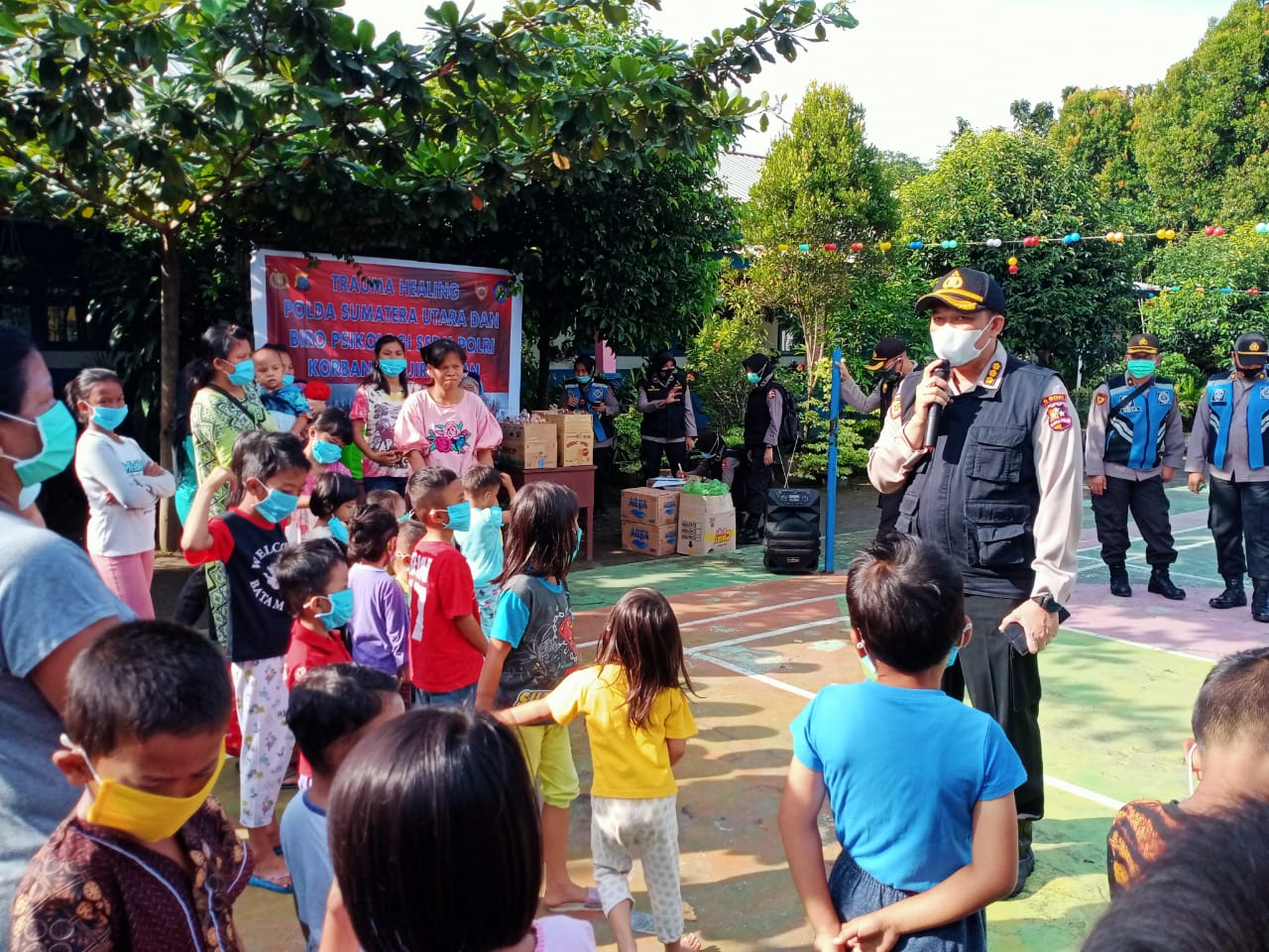 “Kegiatan trauma healing ini sebagai rasa empati dari Polda Sumut dan Mabes Polri. Bentuk kegiatan yang dilaksanakan berlanjut. Bencana tentu berpengaruh kepada tingkat psikologi korban,” katanya.