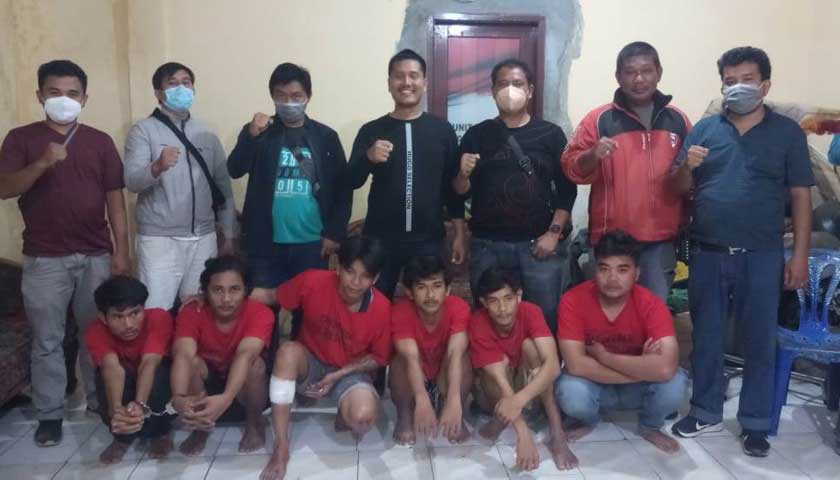 DELITUA – Komplotan perampok bersenjata tajam (saham) ditangkap personel Unit Reskrim Polsek Delitua, Minggu (10/1/2021). Dua dari enam tersangka yang masih berusia belasan tahun terpaksa ditembak karena melakukan perlawanan.