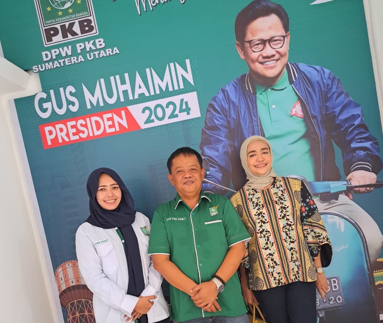 Kedatangan bersama Pelantun lagu Titip Cintaku Nana Mardiana yang juga Alumni Fakultas Psykologi Universitas Medan Area ke Sekretariat DPW PKB Sumut disambut oleh Sekretaris Ir Loso Mena yang juga Anggota DPRD Sumut priode 2019 sd 2024 didampingi Ketua Devisi Data Bacaleg Muslim Pulungan untuk mendaftar sebagai Bacaleg DPRD Sumut pada Pemilu 2024.