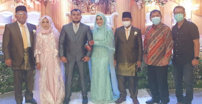 MEDAN – Bupati Karo Terkelin Brahmana SH MH menghadiri resepsi pernikahan putra Plt BPBD Sumut yang juga Kepala Koperindagsu Dr Ir Riadil Akhir Lubis MSi, Minggu sore (7/3/2021), di Hotel Griya Benn Jalan T Amir Hamzah Medan.