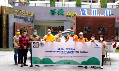 Penyerahan kendaraan senilai Rp 430 juta yang dilengkapi kandang satwa dan peralatan penyelamatan tersebut dilakukan simbolis oleh Senior Manager Government Relations PTAR, Irwanto Situmorang kepada Ketua Umum YPBMM, Eddy dan Pembina YPBMM Biksu Nyanaprathama Mahasthavira di kantor YPBMM di Medan, Rabu (11/8).