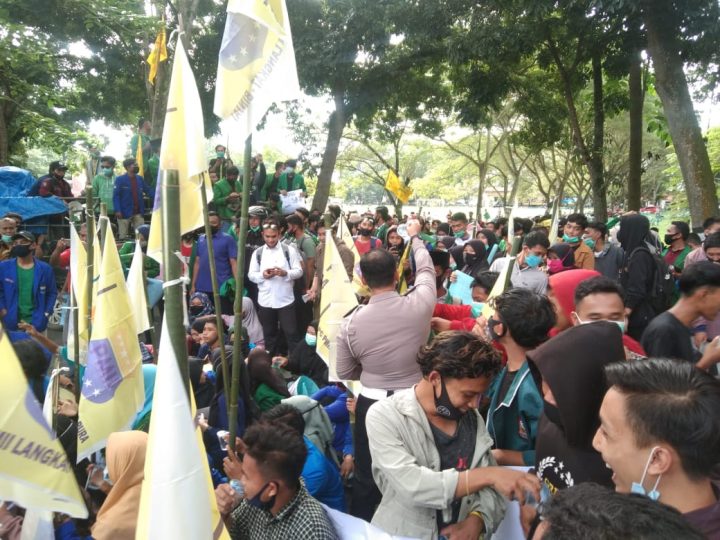 Ratusan Mahasiswa ini melakukan orasi untuk menolak Disahkannya RUU Cipta Kerja atau yang lebih dikenal dengan Omnibus Law sebab hal ini memicu kemarahan berbagai serikat buruh. Tak sedikit masyarakat dan mahasiswa yang merasakan kekecewaan terkait disahkannya kesepakatan RUU tersebut menjadi Undang-Undang (UU) dalam Rapat Paripurna DPR di Senayan, Jakarta, Senin, 5 Oktober 2020 lalu.