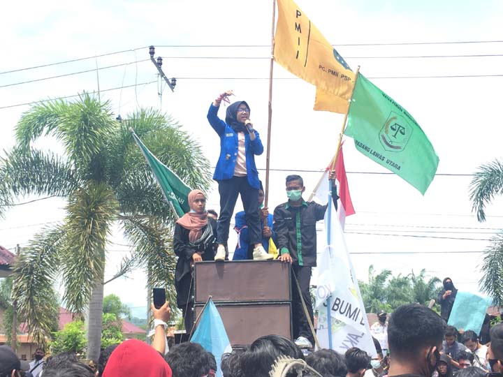 Jainuddin Hasibuan selaku Kordinator Aksi dalam orasi nya sangat mengecewakan tindakan dari anggota DPRD Paluta yang enggan menandatangani surat pernyataan penolakan UU Omnibus Law Cipta Kerja yang sudah di sah kan DPR RI beberapa waktu lalu.