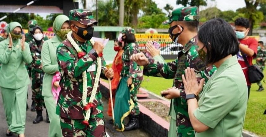 SIMALUNGUN – Pangdam I/Bukit Barisan Mayjen TNI Hassanudin SIP MM bersama Ketua Persit KCK PD l/Bukit Barisan Dwiane Desliana Hassanudin dan rombongan laksanakan kunker ke Korem 022/Pantai Timur, Jalan Asahan KM 3.5, Nagori Siantar State, Kecamatan Siantar, Kabupaten Simalungun, Selasa (12/1/2021).