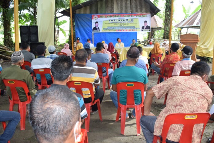 STABAT – realitasonline.id | Pemandangan yang berbeda pada reses Ketua DPRD Kabupaten Langkat, Surialam, saat mengunjungi konstituennya di Desa Sambirejo Kecamatan Binjai yang merupakan salah satu Kecamatan di daerah pemilihannya, Kamis (11/2/2021).