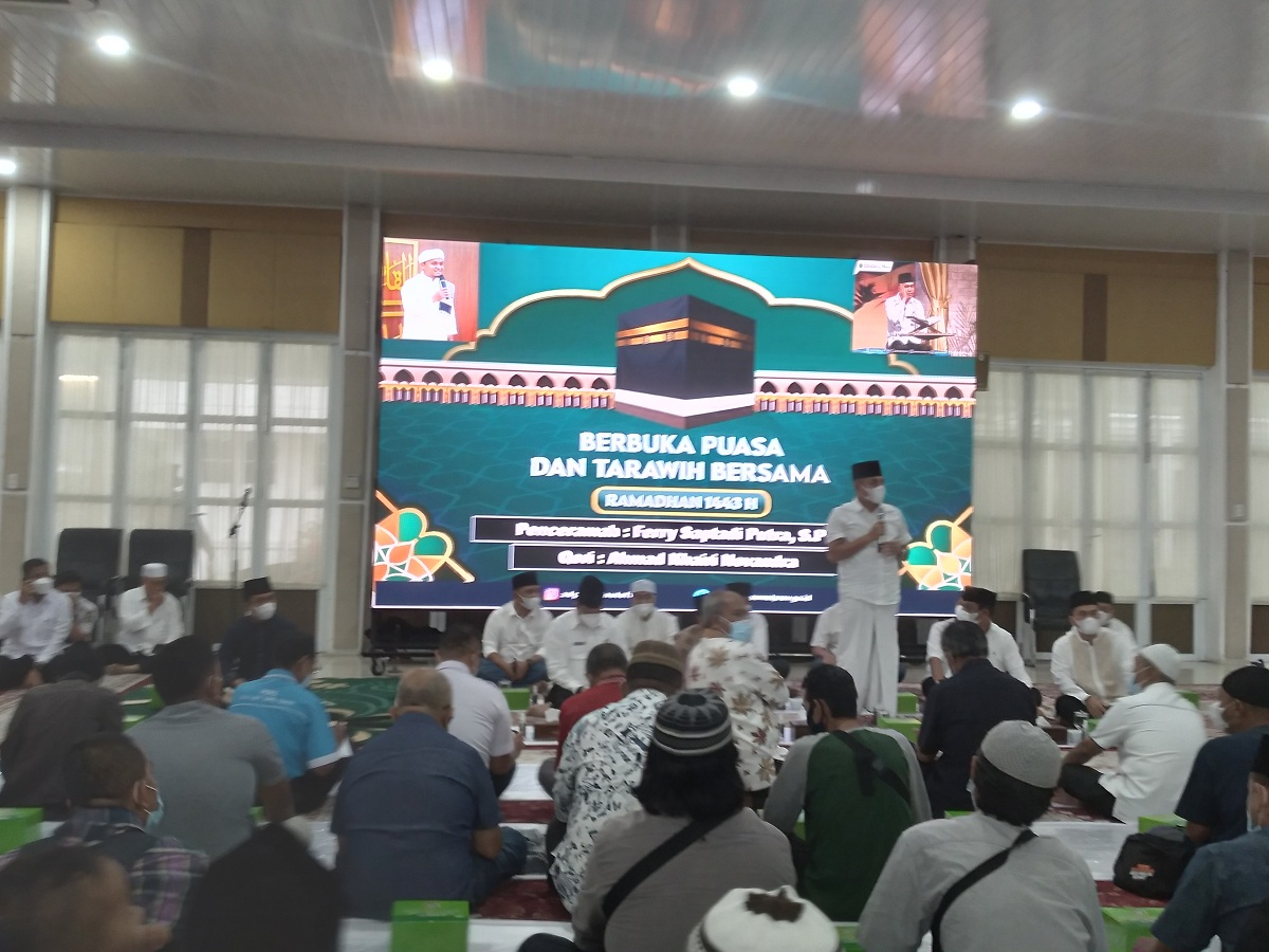 Usai berbuka puasa bersama, kegiatan dilanjutkan Sholat Magrib dan pemberian paket Sembako pada segenap peserta acara. (PS/HERMANTO)