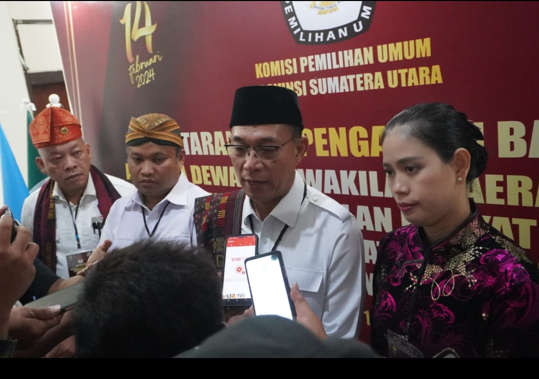 Berkas kemudian diterima Ketua KPU Sumut Herdensi SSos MSP didampingi komisioner lainnya, Ketua Bawaslu dan komisioner, serta perangkat KPU Sumut lainnya.