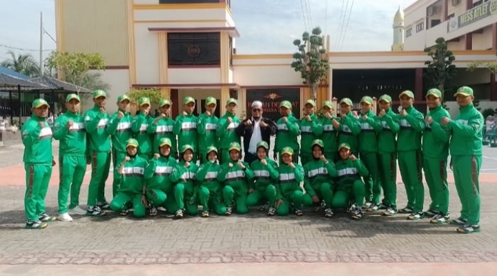 Ketua Pengprov Kodrat Sumut, H Tasimin MT memimpin apel yang turut dihadiri para pengurus serta keluarga para atlet.