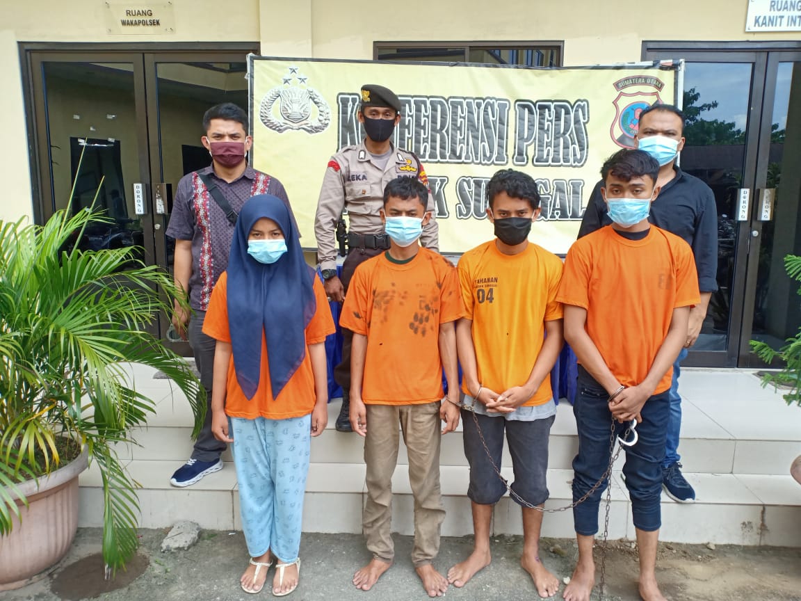 Diungkapkan Budiman, keempat pelaku begal beeinisial MFA (17), FAL (19), RA (16) dan seorang wanita DES (15) seluruhnya warga Desa Sunggal Kanan, Kecamatan Sunggal Deli Serdang.