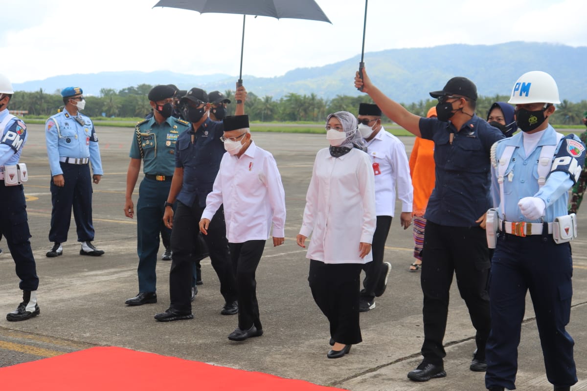 Wapres yang didampingi Istri, Ibu Hj. Wury Ma’ruf Amin tiba sekitar pukul 12.30 Wit menggunakan pesawat khusus Kepresidenan Boeing 737-400 TNI AU yang bertolak dari Jakarta.