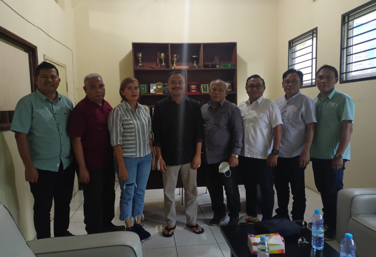 Rombongan Pengurus dan Panitia Rangkaian Kegiatan Hari Pers Nasional (HPN) 2023 SMSI di Sumut, diterima langsung Ketua PWI Sumut, Farianda Putra Sinik.