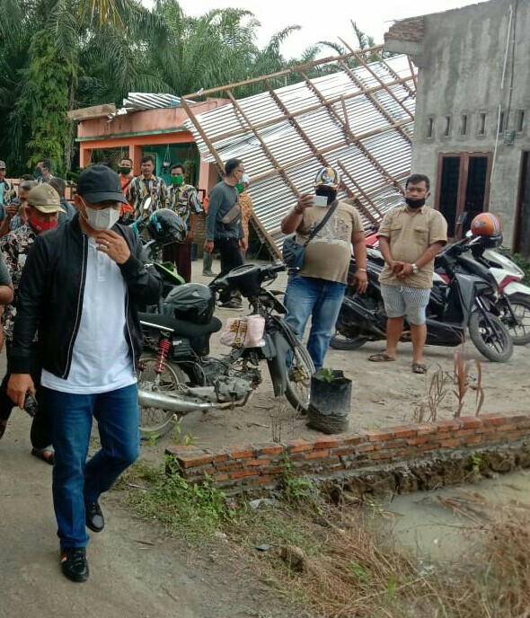 LIMAPULUH – realitasonline.id | Bupati Batubara Ir H Zahir MAP , Minggu (13/12/2020) pagi meninjau lokasi rumah warga yang menjadi korban angin Puting Beliung di Desa Tanjung Seri Kec Laut Tador Kab. Batubara.