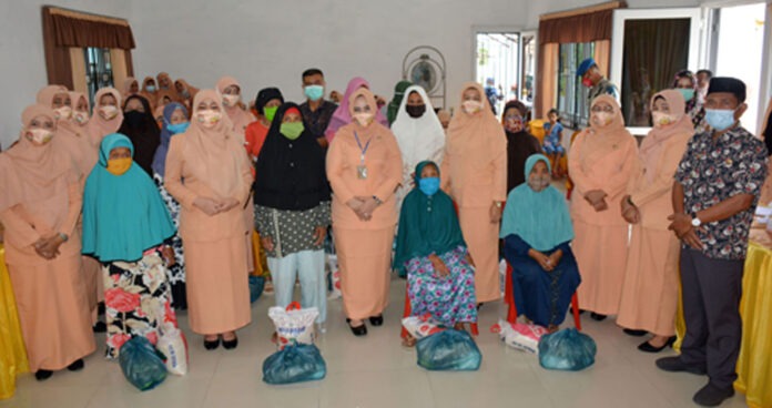 Sembari menjelaskan, masker di bagikan kepada seluruh ketua DWP unit Kecamatan yang selanjutnya dibagikan kepada masing – masing anggota. Sedangkan paket sebambako berupa, 5 kg beras, 20 butir telur, 1 liter minyak goreng, 1 kg gula pasir dan 1 kotak teh celup. (MA)