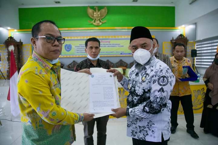 LABUHANBATU – Bupati Labuhanbatu H Andi Suhaimi Dalimunthe menandatangani perjanjian kerjasama dan penyerahan peta ZNT (zona nilai tanah) serta penyerahan aset Pemerintah Kabupaten (Pemkab) dengan BPN Labuhanbatu di ruang data dan karya Bupati Labuhanbatu Kamis (14/1/2021) siang.