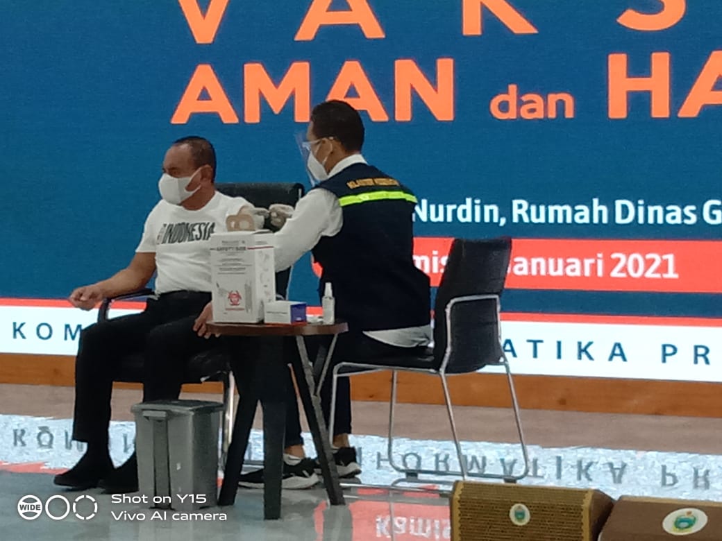MEDAN – Gubernur Sumatera Utara (Gubsu) Edy Rahmayadi menjadi orang pertama yang disuntik vaksin Corona atau Covid-19 di Sumut yang dilangsungkan di Pondopo Rumah Dinas Gubernur Jalan Sudirman 42 Medan, pada Kamis (14/1/2021).