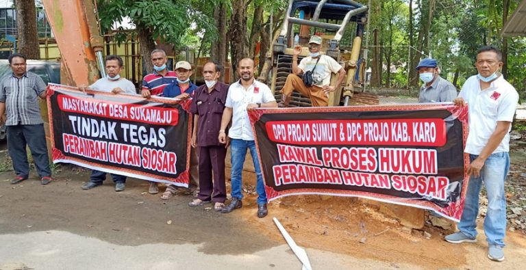 “Kami DPC Projo Karo bersama masyarakat Desa Sukamaju sangat berharap Dishut Sumut Cq Polhut (Polisi Kehutanan) menangkap mafia perambah hutan Siosar Puncak 2000. Jangan hanya alat beratnya (buldozer) saja yang diamankan dan disita sebagai barang bukti,” tandas Ketua DPC Projo Karo Lloyd Reynold Ginting Munthe SP dalam pernyataan sikapnya.