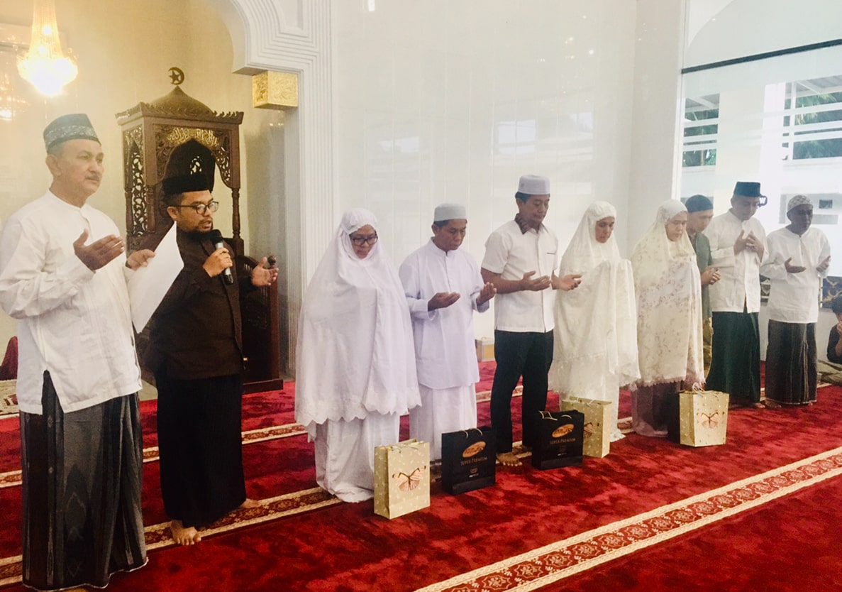 Penyerahan bingkisan kepada jamaah yang InsyaAllah menunaikan Ibadah Haji ke Makkatul Mukarromah tersebut diiringi Doa keselamatan, kesehatan dan InsyaAllah menjadi Haji dan Hajjah yang Mabrur dan Mabrurrah. Doa dipandu Al Ustadz Irham Khalid Gymnastiar MA.