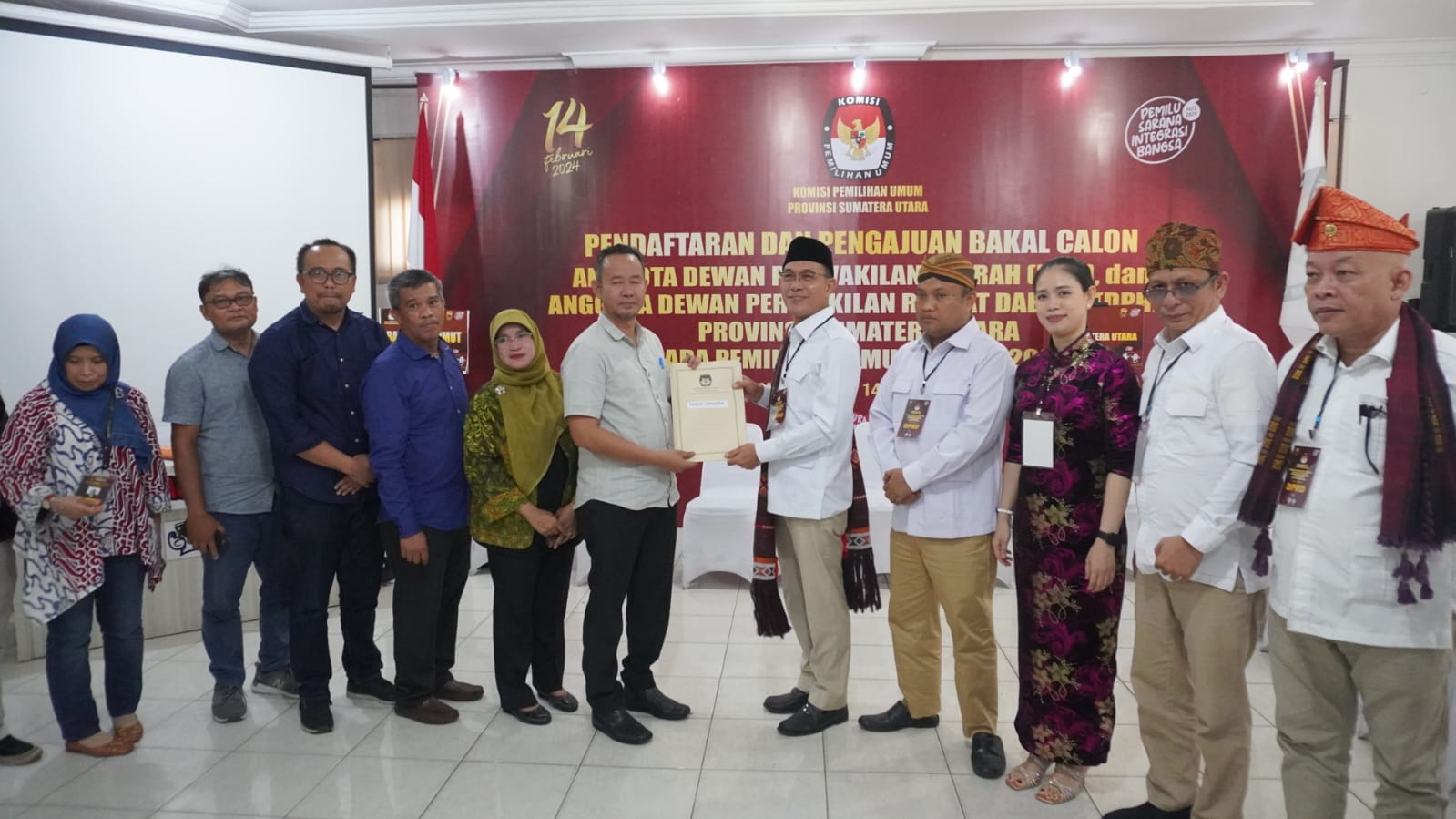 Sebelumnya, Gus Irawan Pasaribu didampingi Sekretaris DPD Partai Gerindra Sumut Sugiat Santoso SE MSP, Bendahara Merry Amelia Prasetio, Ketua Bappilu DPD Gerindra Sumut H Aripay Tambunan, dan Ketua Badan Saksi DPD Gerindra Sumut Dedi Arfan Sinaga, menyerahkan berkas pendaftaran bacaleg untuk DPRD Sumut.