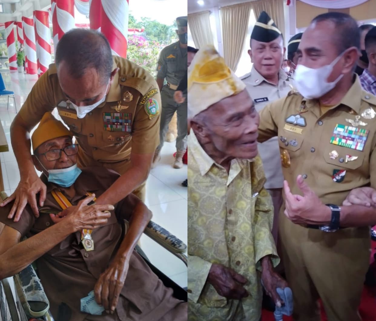 Kedua veteran dan pejuang tersebut dipeluk Gubsu yaitu M Sinuraya (105 tahun) mantan pejuang veteran perang Medan Area dan H Muhammad TWH (91 tahun) veteran, mantan wartawan 3 zaman dan dikenal juga penulis sejarah perjuangan pers di Sumut. Tampak kedua veteran ini bahagia ketika dihampiri dan dirangkul Gubsu.