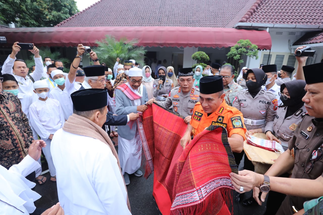 MEDAN-Habib Luthfi tiba di rumah dinas Kapolda Sumatera Utara di Jalan Walikota Medan, Rabu (14/09/2022). Kapolda Sumut Irjen Pol. Drs. R. Z. Panca Putra S, M.Si menyambut hangat kedatangan Habib Luthfi beserta rombongan.