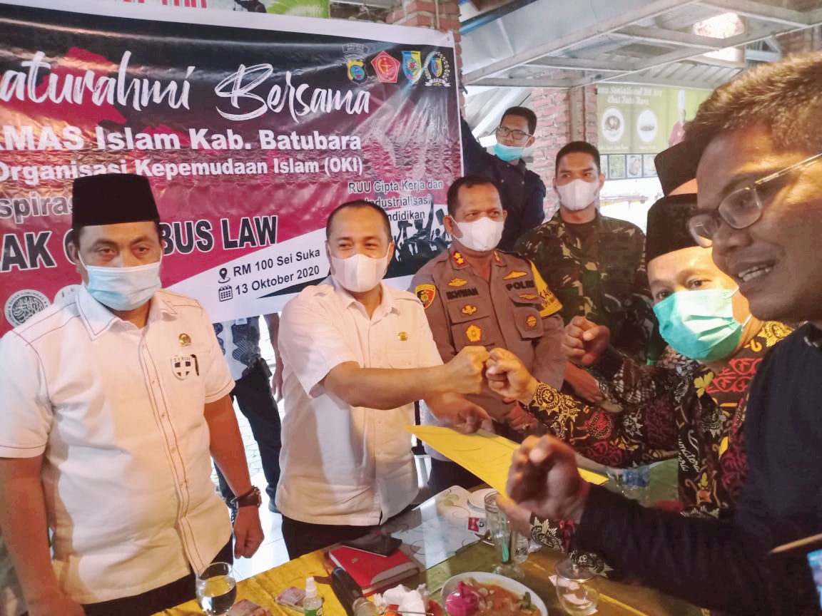 Hal tersebut ditegaskan Bupati Zahir diacara Demonstrasi Ormas Islam dan Ormas Kepemudaan Islam Batu Bara dengan silaturahmi 13/10 di Indrapura untuk membahas dan berdiskusi atas disyahkan nya UU Cipta Kerja 5 oktober yang lalu.
